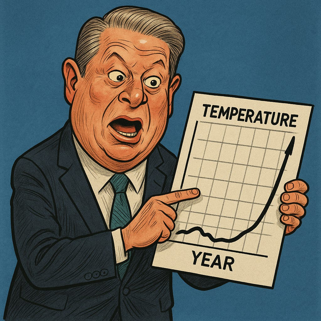 The man couldn’t deliver a weather forecast without climaxing over rising sea levels. Every speech was a full-body shiver wrapped in a PowerPoint of doom. Charts that shot up like a rocket. Arrows dripping with climate despair. All of it drenched in self-importance and cherry-picked data that’d make a high school science teacher blush.