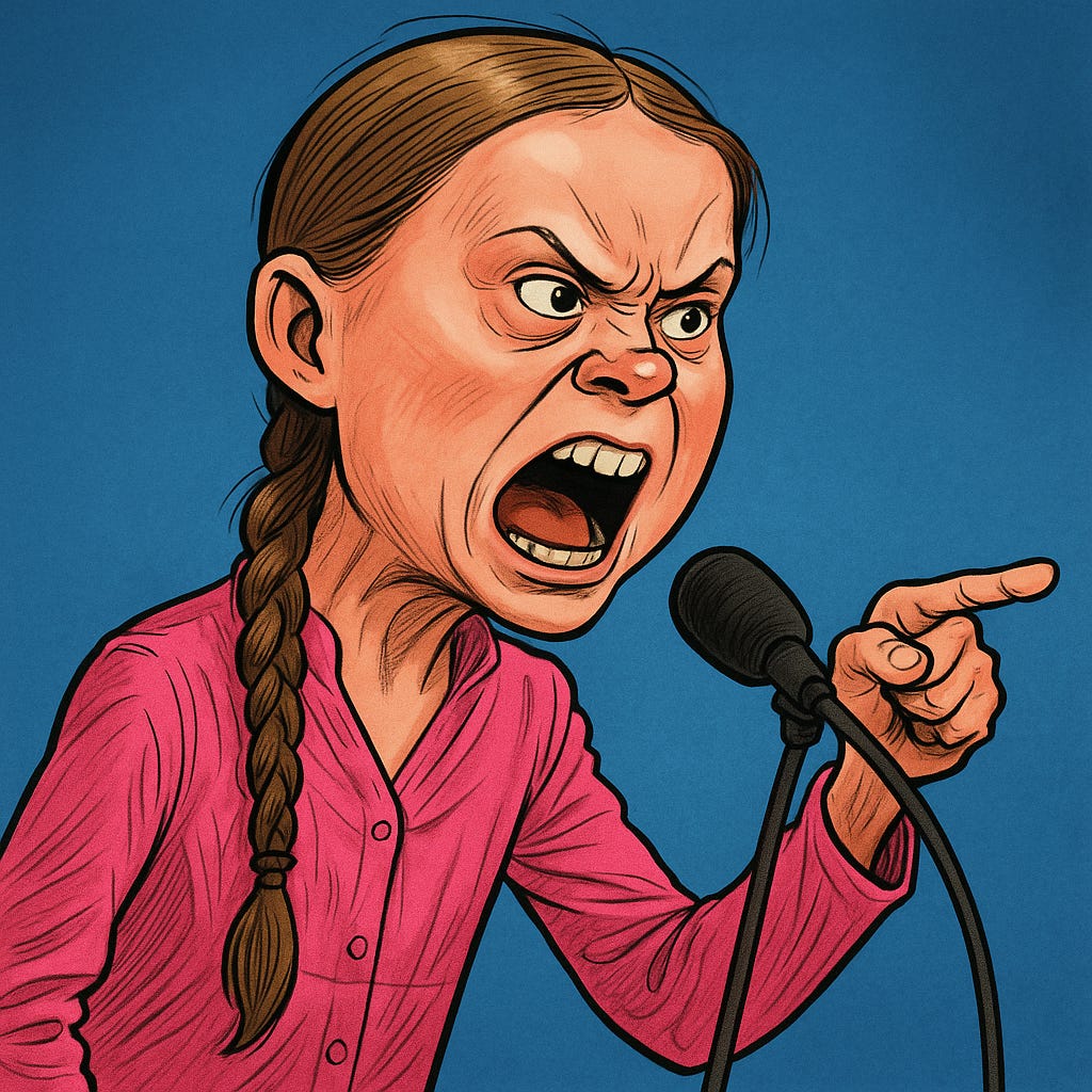 This walking soundbite has been paraded across the globe to glower at world leaders while shrieking “How dare you!” like the Earth’s crankiest babysitter. No facts, no real proposals, just emotional blackmail in braids.