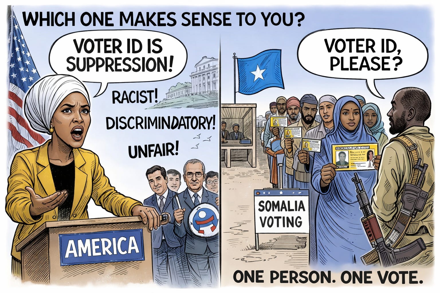 We live in a country where you need ID to buy cold medicine, rent a kayak, or return a pair of socks at Target but somehow, asking for it at the ballot box is treated like a hate crime. The same politicians who preach “protect our democracy” are allergic to the most basic adult standard: prove you are who you say you are. Everywhere else on the planet — from France to freakin’ Somalia voter ID is normal. Here? It’s a meltdown.