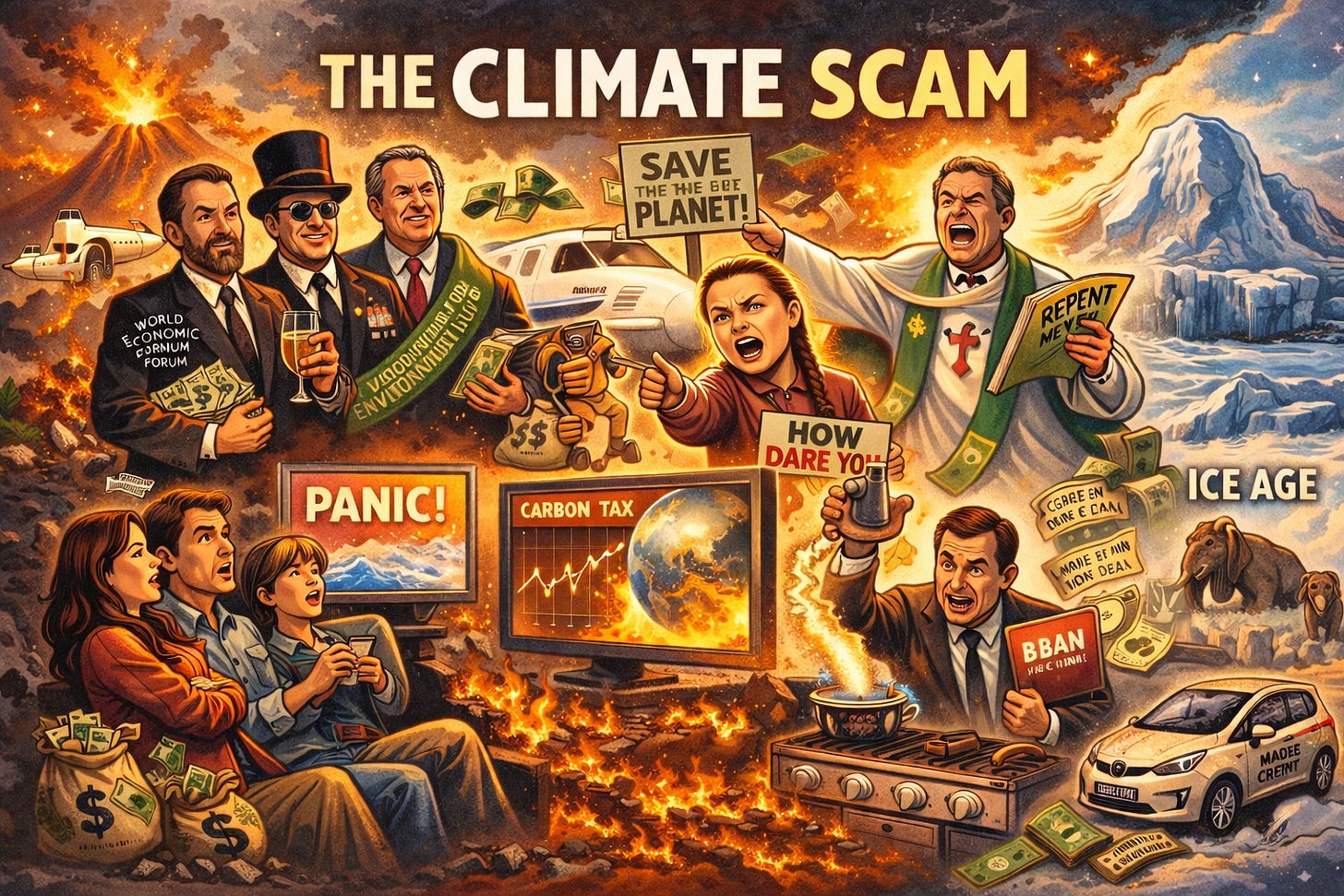 But here’s the scam: This time, it’s our fault: says who? The Climate Carnival Barkers. The Apocalypse Entrepreneurs. The High Priests of Hypocrisy flying private jets to climate conferences while lecturing you for owning a gas stove.