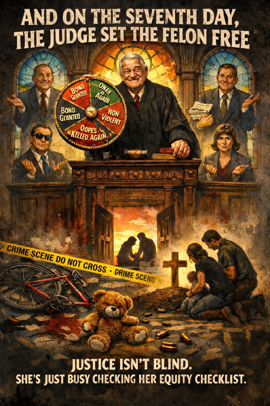 They’re up there in their robes, floating five feet off the ground like legal deities, mumbling something about “equity” and “non-violent charges” while real people die on the pavement.